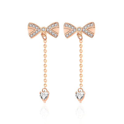 Sterling Silver Bowknot Tassel Simple Stud Earrings